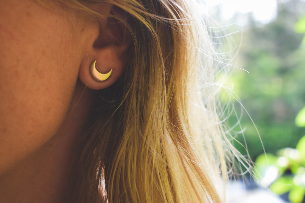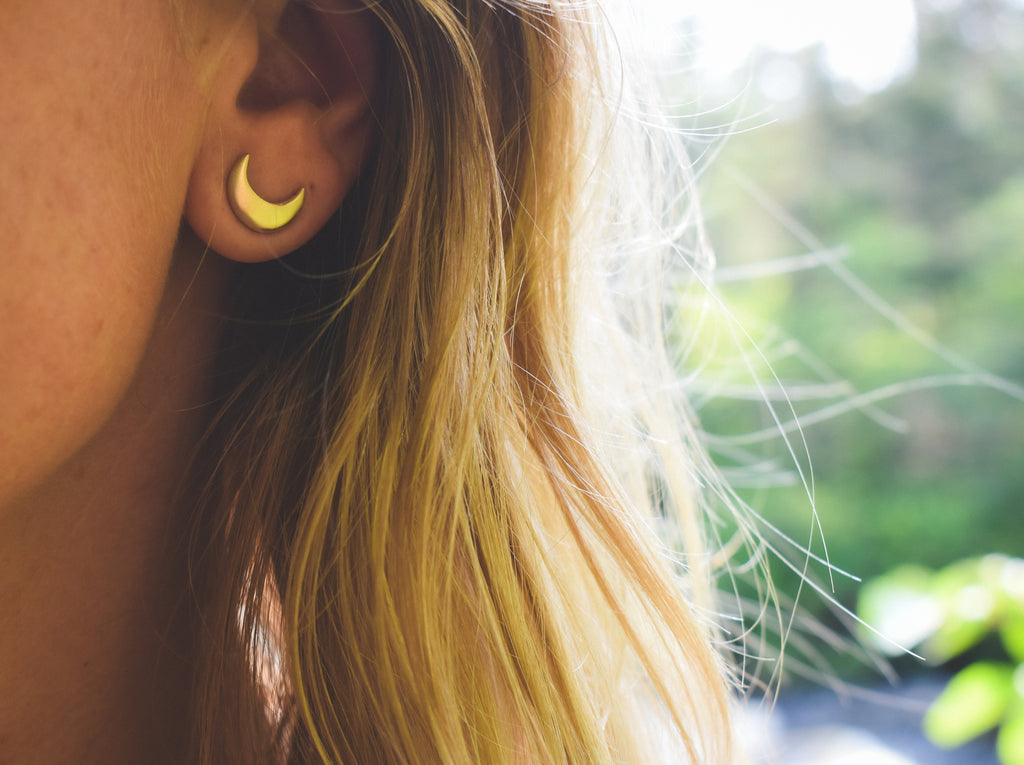 My new dailies! Hand-carved crescent horn moons, the ancient symbol of the divine feminine. Now in 14 karat solid gold! They come with big silicon ear nuts as well as heavyweight sterling silver ear nuts. If you would like a pair of solid gold ear nuts, please reach out for a quote. These can be worn around the clock ;) Solid 14 karat yellow gold.
