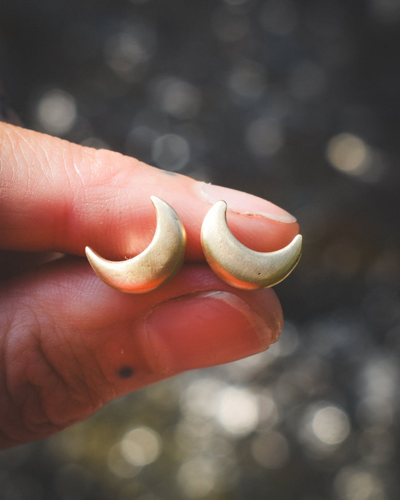 When I was designing my Lunula amulets, I decided to create a diminutive version too, originally thinking they'd be super cute as charms - and now they've evolved into the most perfect daily wearing post earrings. These little moons are quite sculptural, beautifully rounded to ensure there are no sharp edges or points, and in form they stay true to the ancient designs that inspired them.