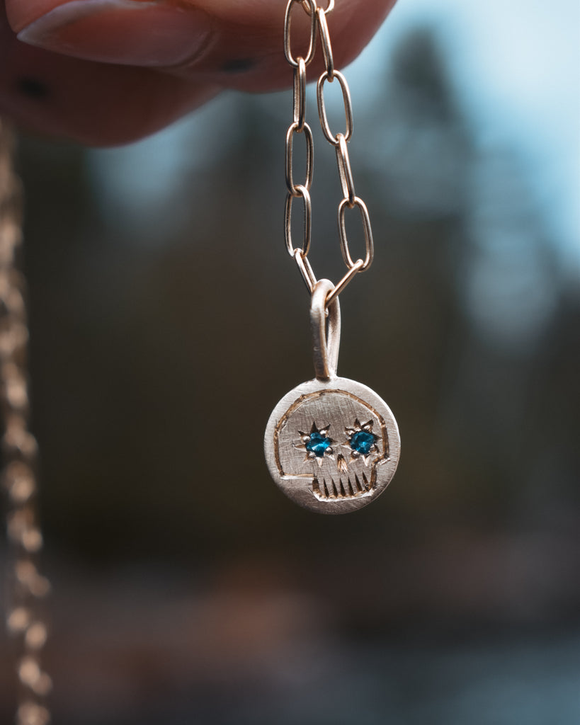 Skully Charm - Solid 14k Gold & Montana Sapphires